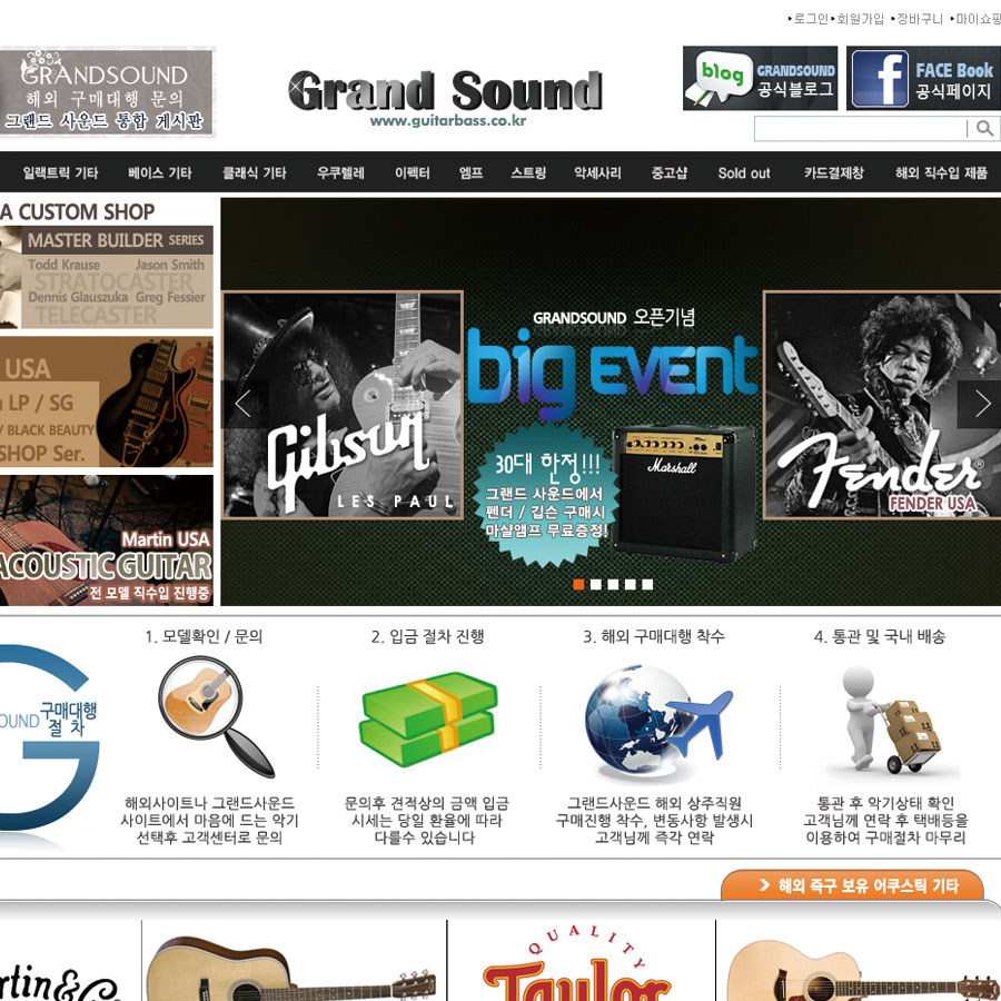 グランドミュージックギターを中心に販売しているサイトです。http://www.guitarbass.co.kr/韓国語でご不明な点がございまし…