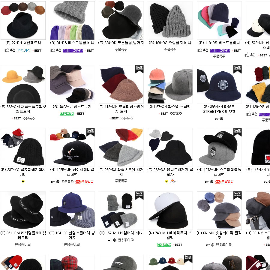 東大門帽子(トンデムンモジャ)という卸のサイトです。卸会員しか詳細を見る事が出来ませんが種類はかなり多くそろえており…