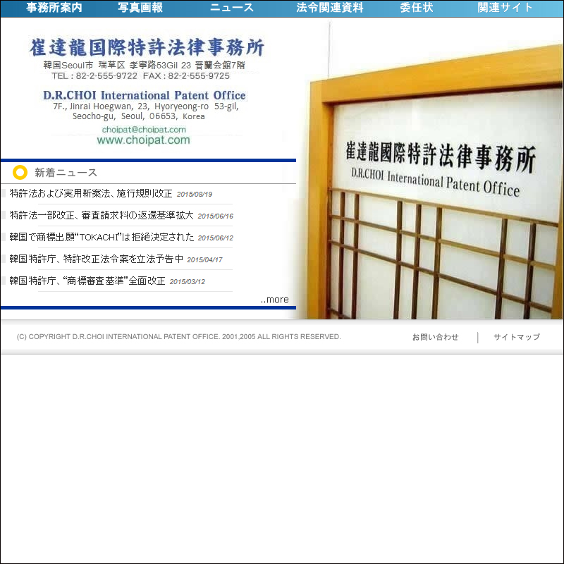 韓国での特許申請や商標登録の「崔達龍国際特許法律事務所」様です。日本人スタッフの方も多数いらっしゃいます。http://www.…