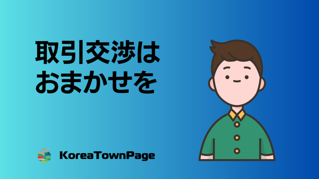 🇯🇵日本語で対応してくれる会社もありますが、やっぱりどうしても不安だという方には、「取引代行AGENTサービス」をご利用いただけます。交渉はもちろんの事、代金のやりとりや、🇰🇷韓国からの発送手配まで全てワンストップで行う有料サービスとなります。